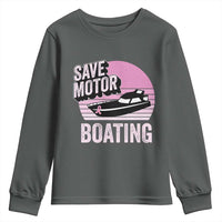 Funny Save Motor Boating Youth Sweatshirt Breast Cancer Pink Ribbon