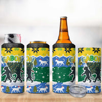 Gabon Christmas 4 in 1 Can Cooler Tumbler with Black Panthers Carrying Tree and Green Yellow Snowflake Pattern