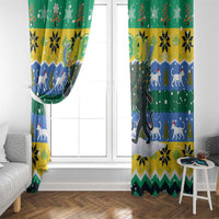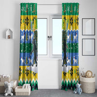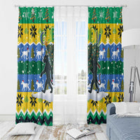 Gabon Christmas Window Curtain with Black Panthers Carrying Tree and Green Yellow Snowflake Pattern