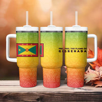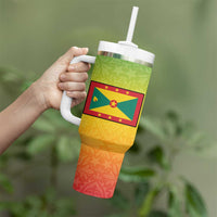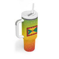 Grenada Tribal Floral Pattern Tumbler With Handle with Rasta Gradient and Flame Motto Design