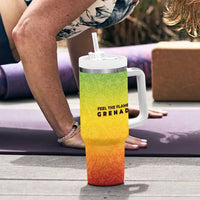 Grenada Tribal Floral Pattern Tumbler With Handle with Rasta Gradient and Flame Motto Design TS04