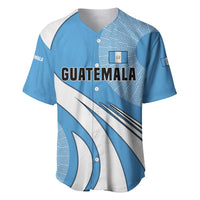 Guatemala Flag Map Baseball Jersey with Blue White Swirl and Geometric Pattern Design