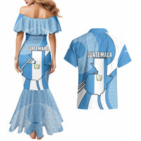 Guatemala Flag Map Couples Matching Mermaid Dress and Hawaiian Shirt with Blue White Swirl and Geometric Pattern Design TS04
