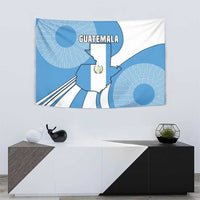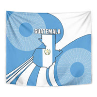 Guatemala Flag Map Tapestry with Blue White Swirl and Geometric Pattern Design TS04