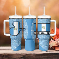 Guatemala Flag Map Tumbler With Handle with Blue White Swirl and Geometric Pattern Design TS04