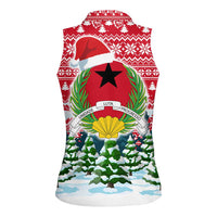 Guinea Bissau Christmas Women Sleeveless Polo Shirt with Santa Sleigh Reindeer Forest and National Flag Design TS04