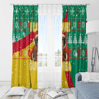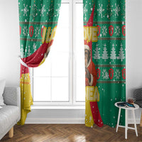 Guinea Christmas Window Curtain with Santa Chimpanzee Heart Hands and Green Red Snowflake Pattern