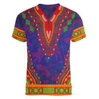Haiti Choeblack Dashiki Style Women V-Neck T-Shirt Blue Color