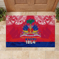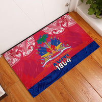 Haiti Independence Day Rubber Doormat Libete Egalite Fratenite Ayiti 1804 With Polynesian Pattern