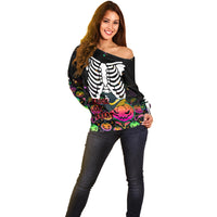 Halloween Skeleton Off Shoulder Sweater Trick or Treat Witch Pumpkin Colorful