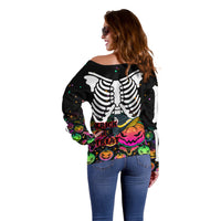 Halloween Skeleton Off Shoulder Sweater Trick or Treat Witch Pumpkin Colorful LT01