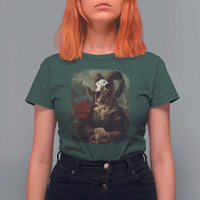 Halloween T Shirt For Women Creepy Mona Lisa Satan Pentagram Leonardo da Vinci