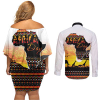Happy Africa Day Couples Matching Off Shoulder Short Dress and Long Sleeve Button Shirt African Safari With Map LT15