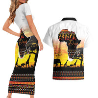 Happy Africa Day Couples Matching Short Sleeve Bodycon Dress and Hawaiian Shirt African Safari With Map