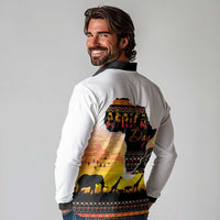 Happy Africa Day Long Sleeve Polo Shirt African Safari With Map