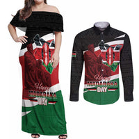 Happy Madaraka Day 2025 Couples Matching Off Shoulder Maxi Dress and Long Sleeve Button Shirt Kenya Harambee