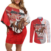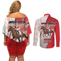 Horse Racing Christmas Couples Matching Off Shoulder Short Dress and Long Sleeve Button Shirt Giddy Up Pick Up Your Feet