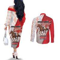 Horse Racing Christmas Couples Matching Off The Shoulder Long Sleeve Dress and Long Sleeve Button Shirt Giddy Up Pick Up Your Feet DT05