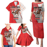 Horse Racing Christmas Family Matching Puletasi and Hawaiian Shirt Giddy Up Pick Up Your Feet