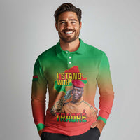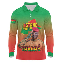 I Stand With Traore Long Sleeve Polo Shirt Burkina Faso Flag Map - African Pattern