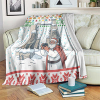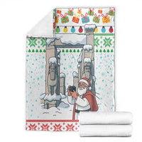 Iran Christmas Blanket with Santa Taking Photos Ancient Columns and Snowflake Gift Pattern TS04