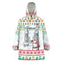 Iran Christmas Wearable Blanket Hoodie with Santa Taking Photos Ancient Columns and Snowflake Gift Pattern TS04