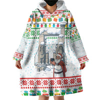 Iran Christmas Wearable Blanket Hoodie with Santa Taking Photos Ancient Columns and Snowflake Gift Pattern