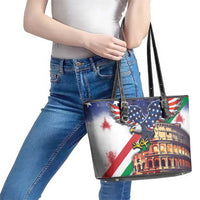 Italian American Heritage Month Leather Tote Bag USA Eagle and The Colosseum with National Flag