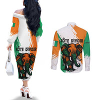 Ivory Coast Couples Matching Off The Shoulder Long Sleeve Dress and Long Sleeve Button Shirt with Tribal Elephant and Paint Splash Design