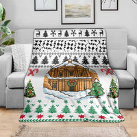 Jordan Christmas Blanket with Petra Monastery Snow Christmas Trees and Candy Cane Pattern