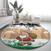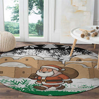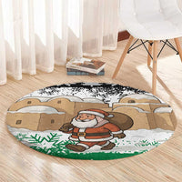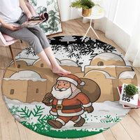 Jordan Christmas Round Carpet with Santa Snow Village Green and Black Snowflake Tree Pattern