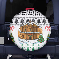 Jordan Christmas Spare Tire Cover with Petra Monastery Snow Christmas Trees and Candy Cane Pattern