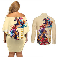 Kentucky Couples Matching Off Shoulder Short Dress and Long Sleeve Button Shirt Horse Racing Lily Stargazer LT01
