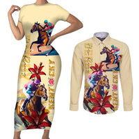 Kentucky Couples Matching Short Sleeve Bodycon Dress and Long Sleeve Button Shirt Horse Racing Lily Stargazer LT01