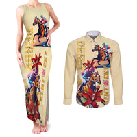 Kentucky Couples Matching Tank Maxi Dress and Long Sleeve Button Shirt Horse Racing Lily Stargazer LT01