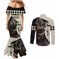 Kentucky Racing Horses Derby Hat Girl Couples Matching Mermaid Dress and Long Sleeve Button Shirt Black Color LT03