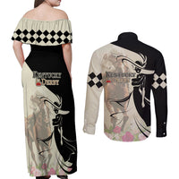 Kentucky Racing Horses Derby Hat Girl Couples Matching Off Shoulder Maxi Dress and Long Sleeve Button Shirt Beige Color LT03