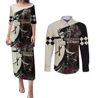 Kentucky Racing Horses Derby Hat Girl Couples Matching Puletasi and Long Sleeve Button Shirt Black Color