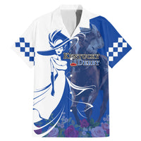 Kentucky Racing Horses Derby Hat Girl Family Matching Mermaid Dress and Hawaiian Shirt Blue Color