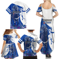 Kentucky Racing Horses Derby Hat Girl Family Matching Summer Maxi Dress and Hawaiian Shirt Blue Color