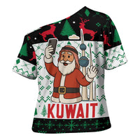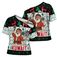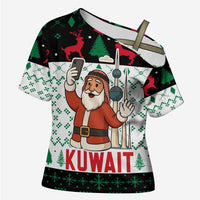 Turn heads and express your unique style with the Kuwait Christmas Cross Shoulder Shirt with Santa Taking Selfie Kuwait Towers Reindeer and Snowflake from Wonder Print Shop. Perfect for casual outings, festivals, or making a fashion statement, this custom-made cross shoulder shirt combines high-end craftsmanship with eye-catching design.