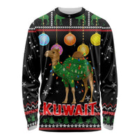 Kuwait Christmas Long Sleeve Shirt with Camel in Festive Ornaments Snowflakes and Green Red TS04