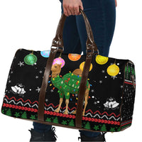 Don’t wait! Elevate your on-the-go style with the Kuwait Christmas Travel Bag with Camel in Festive Ornaments Snowflakes and Green Red by Wonder Print Shop — order now and be ready for your next adventure.