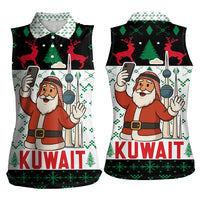 Kuwait Christmas Women Sleeveless Polo Shirt with Santa Taking Selfie Kuwait Towers Reindeer and Snowflake TS04