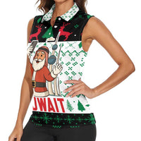 Kuwait Christmas Women Sleeveless Polo Shirt with Santa Taking Selfie Kuwait Towers Reindeer and Snowflake