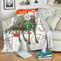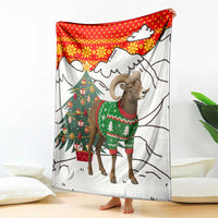 Kyrgyzstan Christmas Blanket with Mountain Goat in Festive Red Snowflake Pattern and Holiday Tree TS04