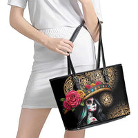 La Calavera Catrina Aztec Circle Leather Tote Bag Dia de Muertos