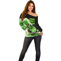 Largemouth Bass Fishing Green Off Shoulder Sweater LT9
