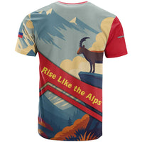 Liechtenstein T Shirt with Mountain Goat Landscape Design and Red Blue Alps TS04
