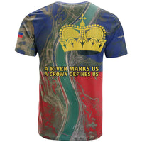 Liechtenstein T Shirt with Red Blue Aerial River Design and Yellow Crown Emblem TS04